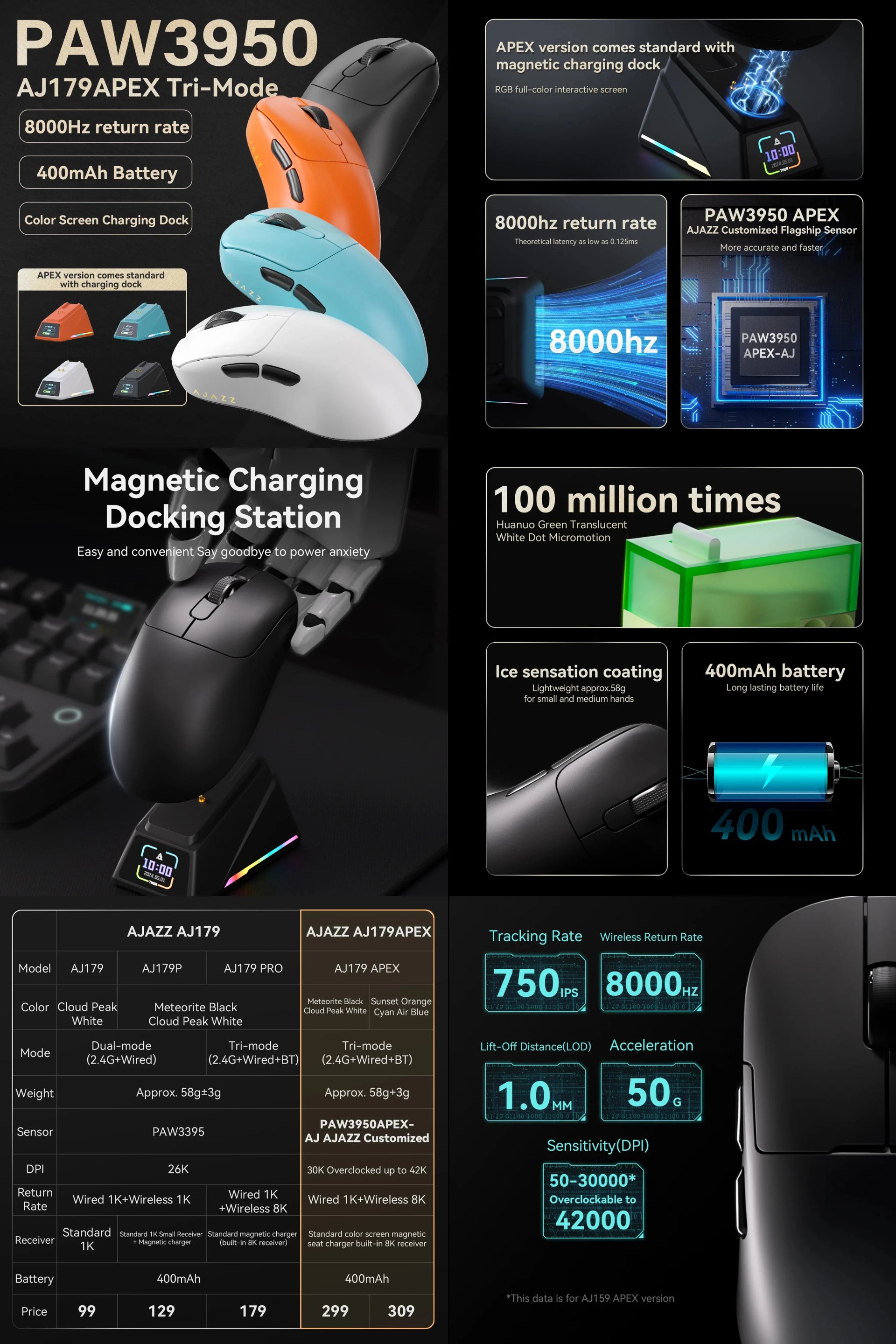 Polling Rate : Wired 1000hz, Wireless 8000hz