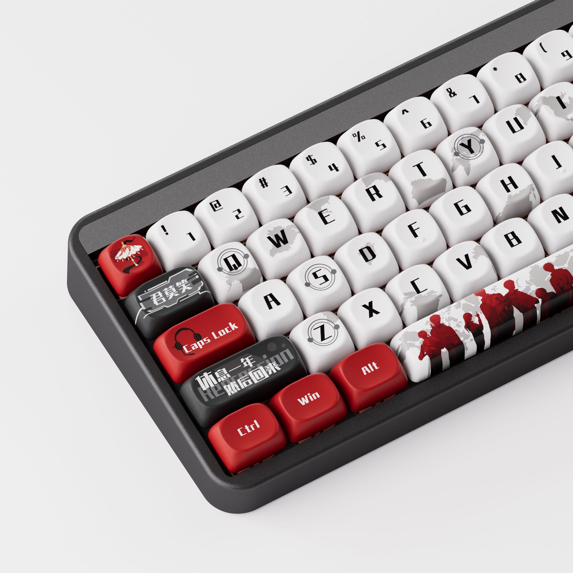 Macro: Akko Macro v1.0 N-Key Rollover: Yes Mac/Win Support: Yes Connection: BT 5.0/2.4 GHz/USB-C Battery: 4000 mAh Layout Size: 65% Layout Standard: ANSI Layout Ergonomics: Normal Mount Style: Gasket Mount Backlight: RGB South-face Case Material: Aluminum case Keycaps Material: PBT Dimensions: (326*122*34)mm Weight: 2.05KG Approx