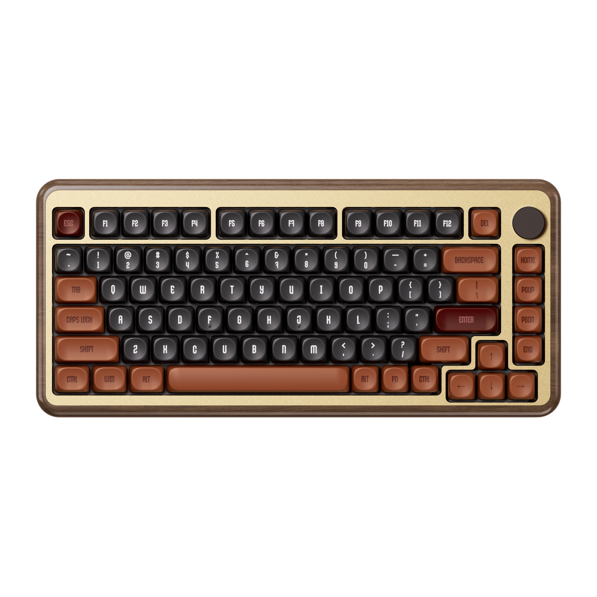 Hot Swappable: Yes QMK/VIA: No N-Key Rollover: Yes Mac/Win Support: Yes Knob: Yes Connection: Bluetooth, 2.4 GHz, Wired Battery capacity: 4000 mAh Layout Size: 75% Layout Standard: ANSI Layout Ergonomics: Normal Mount Style: Gasket Mount Backlight: RGB South-face Case Material: Wood case Keycaps Material: PBT Dimensions: (336*152*36.8)mm Weight: 1.15KG Approx