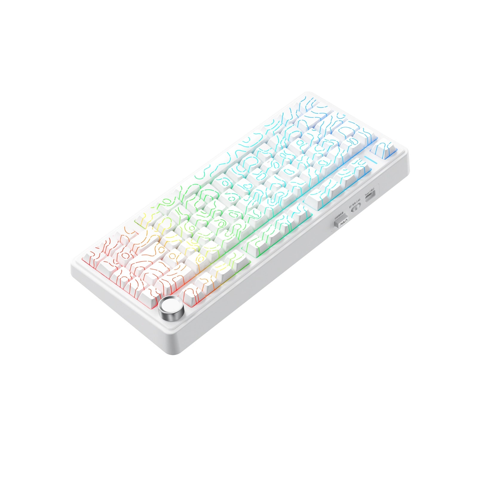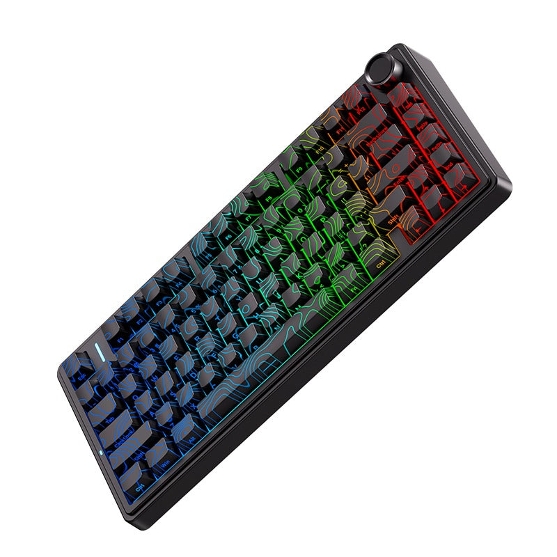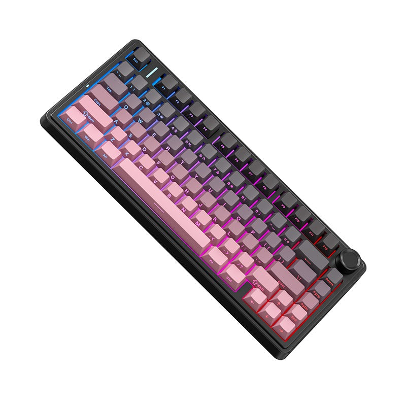 Hot Swappable: Yes Knob Support: Yes Backlight: RGB, South-face Layout Size: 75% Layout Standard: ANSI Layout Ergonomics: Normal Profile: Normal Profile Display Support: No Connection: 2.4 GHz, Bluetooth, USB Battery capacity: 4000 mAh QMK/VIA: No Mount Style: Gasket Mount Case Material: Plastic case Keycaps Material: PBT